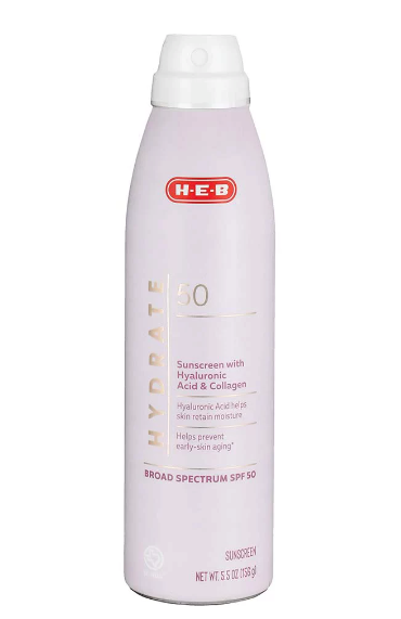 You might be saying, huh? For your face?! Oh yes, HEB has stepped up their game in the sunscreen department. They have a wide range of fun fragrance sunscreens as well as some with glitter. Which I find fun, but not practical. HOWEVER, my holy grail from them is their Hydrate Sunscreen with Hyaluronic Acid & Collagen. I use this as a setting spray, if you will, after my ColorScience or Supergoop. Its also great for older kids to get them to put sunscreen on their face. The spray is cool, comes out in a fine mist and doenst have that stinky sunscreen smell. If youre in Texas, highly suggest you check this out at your local HEB!